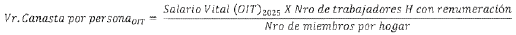 Que, para, el cálculo del salario vital, la OIT plantea la siguiente ecuación: