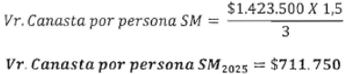 En conclusión, la canasta por persona, para un salario mínimo 2025, aplicando la definición de salario vital es de $711.750.