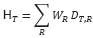 Expresión en la que DT,R es la dosis absorbida debida a la radiación tipo R, promediada sobre un órgano o tejido T, y WR es el factor de ponderación de la radiación correspondiente a la radiación tipo R.