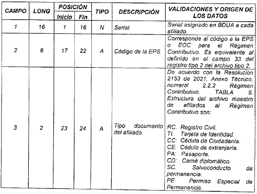 <Campos modificados por el artículo 4 Num. 6 de la Resolución 261 de 2022. El nuevo texto es el siguiente:>