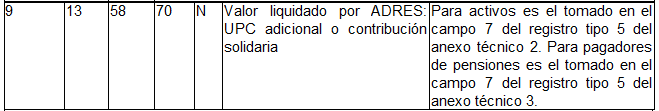 | 7 | 13 | 39 | 51 | N | Valor total de aportes. | Tomado en el campo 5 del registro tipo 9 del Anexo Técnico 2. |